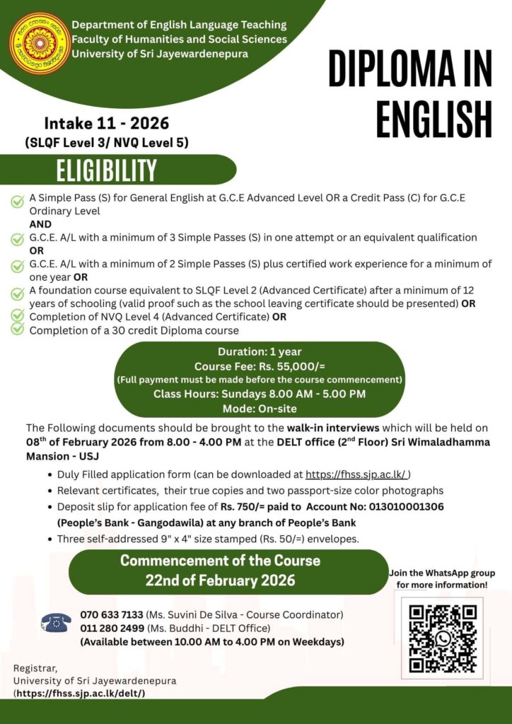 Applications are invited for Diploma in English from suitably qualified individuals.