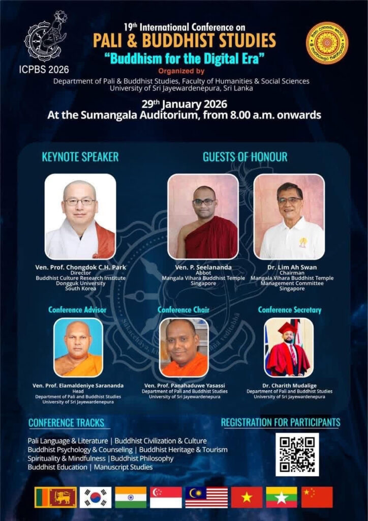 19 th International Conference on Pali and Buddhist Studies Buddhism for the Digital Era organized by Department of Pali and Buddhist Studies,Faculty of Humanities and Social Sciences,University of Sri Jayewardenepura,Sri Lanka.