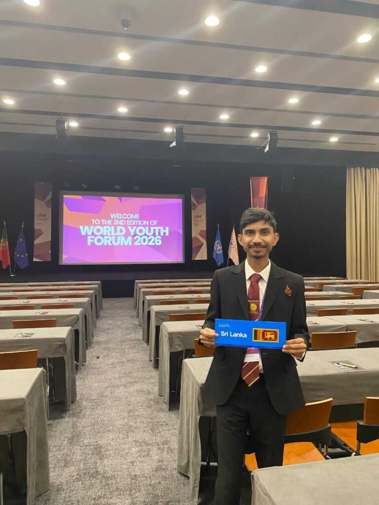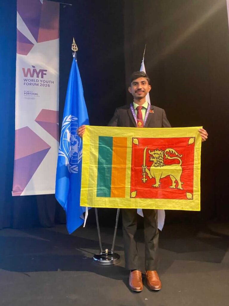 Anjana Nawarathne, a brilliant student of the Department of Information and Communication Technology, Faculty of Humanities and Social Sciences, University of Sri Jayewardenepura, has successfully represented Sri Lanka at the World Youth Forum 2026 held in Porto, Portugal.