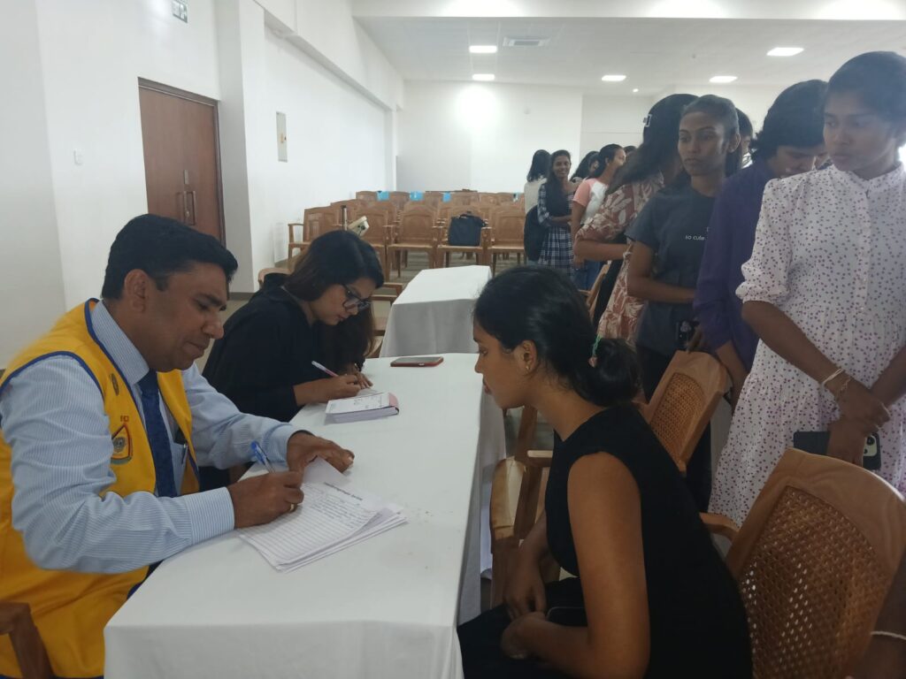 A medical camp was organized for the second time for first-year students enrolled in 2026 at the faculty of Humanities and social Sciences, University of Sri Jayewardenepura. The programme was held on 11th March 2026 from 9.00 a.m. to 1.00 p.m. at the Auditorium of the Wimaladharma Building of the Faculty of Humanities and Social Sciences. The event was jointly organized by the University of Sri Jayewardenepura Alumni Association and Lions Clubs International District 306A-1 under the guidance of Senior Professor Shirantha Heenkenda, Dean of the Faculty of Humanities and Social Sciences. During the camp, students were able to receive several healthcare services including general medical consultations, basic health screenings, advice on preventive healthcare and healthy lifestyles and guidance on managing common medical conditions. A team of volunteer doctors, healthcare professionals and university volunteers contributed their time and expertise to ensure the success of the programme. The initiative aimed to raise awareness about early disease detection and encourage students to maintain healthy lifestyles during their university life.